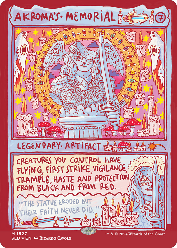 Creatures you control have flying, first strike, vigilance, trample, haste, and protection from black and from red.