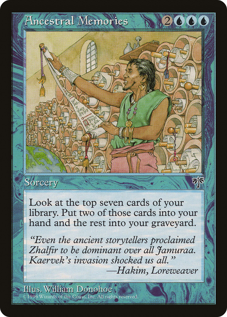 Look at the top seven cards of your library. Put two of them into your hand and the rest into your graveyard.