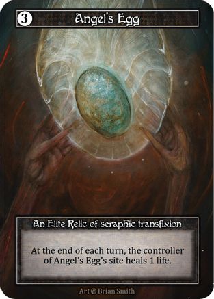 At the end of each turn, the controller of Angel's Egg's site heals 1 life.
