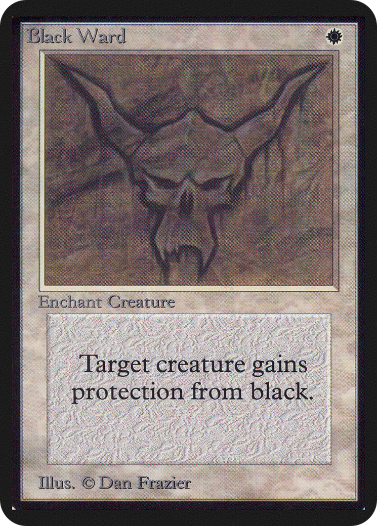 Enchanted creature has protection from black. This effect doesn't remove this Aura.
