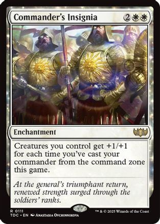 Creatures you control get +1/+1 for each time you've cast your commander from the command zone this game.