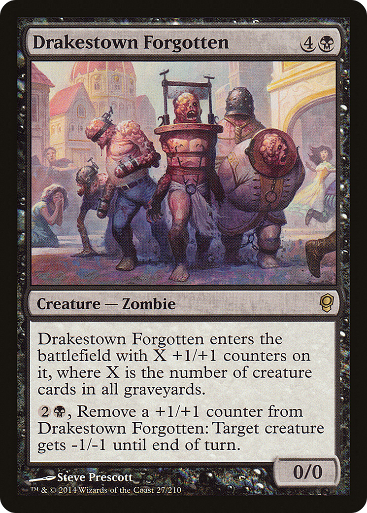 This creature enters with X +1/+1 counters on it, where X is the number of creature cards in all graveyards. , Remove a +1/+1 counter from this creature: Target creature gets -1/-1 until end of turn.
