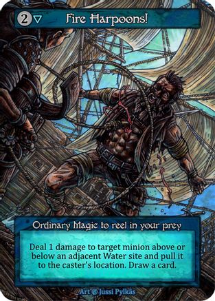 Deal 1 damage to target minion above or below an adjacent Water site and pull it to the caster's location. Draw a card.