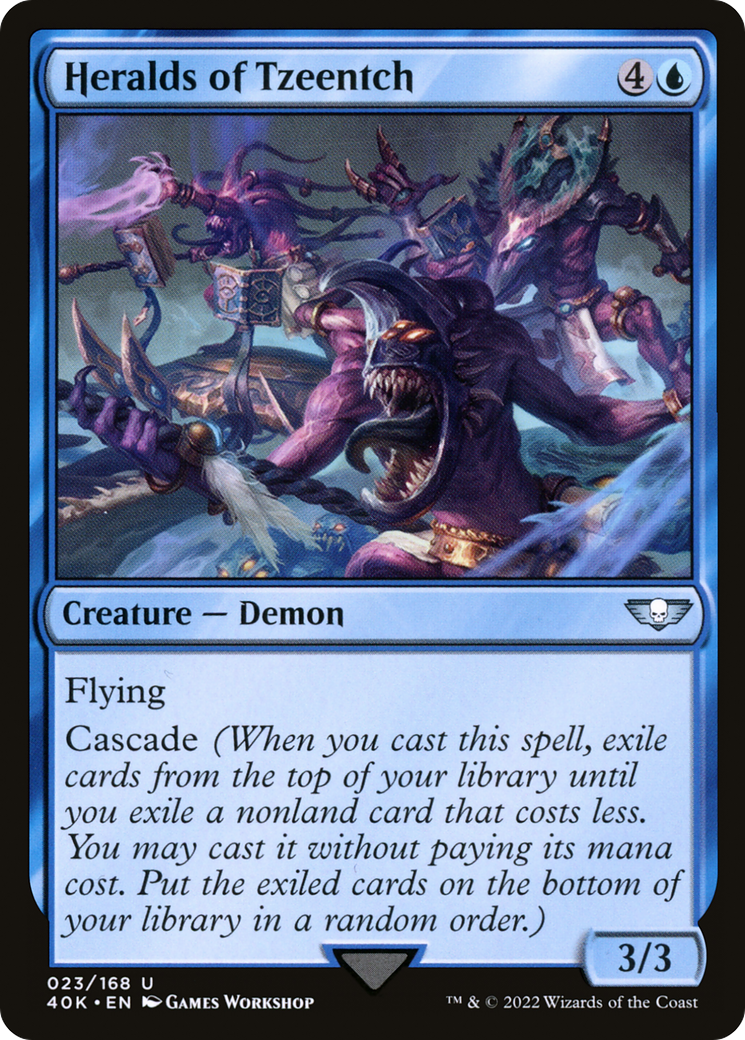 Cascade (When you cast this spell, exile cards from the top of your library until you exile a nonland card that costs less. You may cast it without paying its mana cost. Put the exiled cards on the bottom in a random order.)