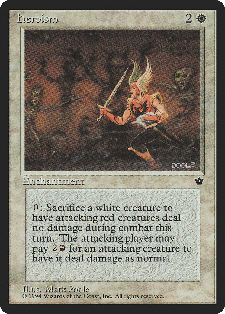 Sacrifice a white creature: For each attacking red creature, prevent all combat damage that would be dealt by that creature this turn unless its controller pays .