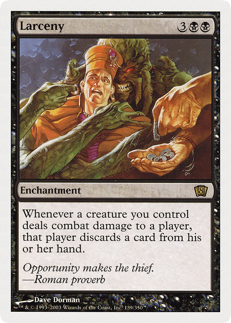 Whenever a creature you control deals combat damage to a player, that player discards a card.