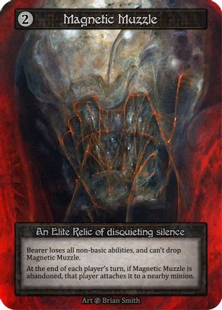 At the end of each player’s turn, if Magnetic Muzzle is abandoned, that player attaches it to a nearby minion.