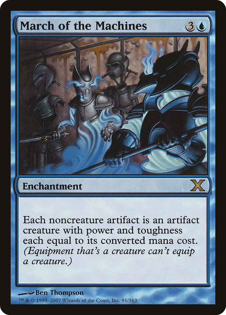 Each noncreature artifact is an artifact creature with power and toughness each equal to its mana value. (Equipment that's a creature can't equip a creature.)