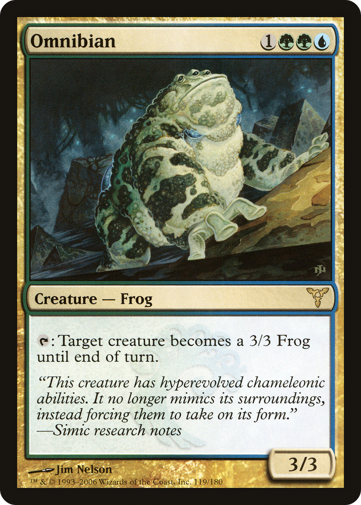 : Target creature becomes a Frog with base power and toughness 3/3 until end of turn.