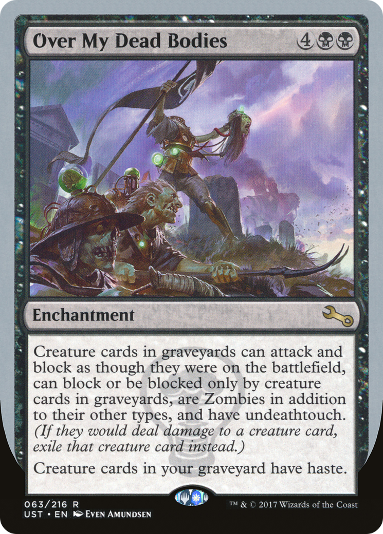 Creature cards in graveyards can attack and block as though they were on the battlefield, can block or be blocked only by creature cards in graveyards, are Zombies in addition to their other types, and have undeathtouch. (If they would deal damage to a creature card, exile that creature card instead.)