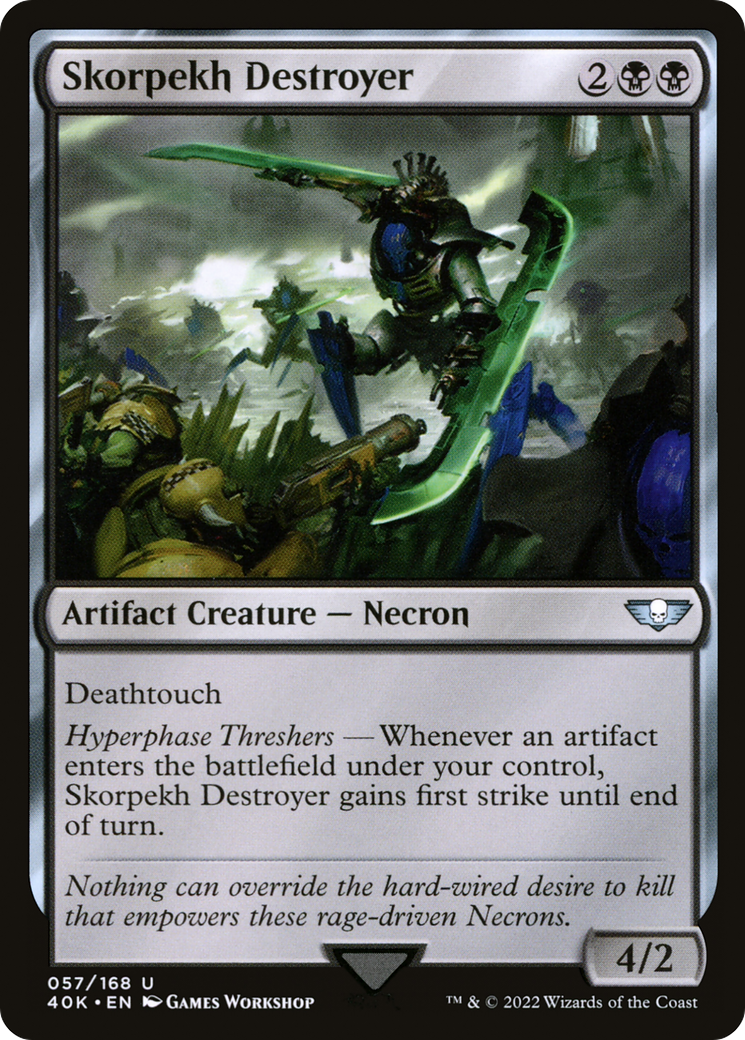 Hyperphase Threshers — Whenever an artifact you control enters, this creature gains first strike until end of turn.