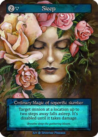 Target minion at a location up to two steps away falls asleep. It's disabled until it takes damage.