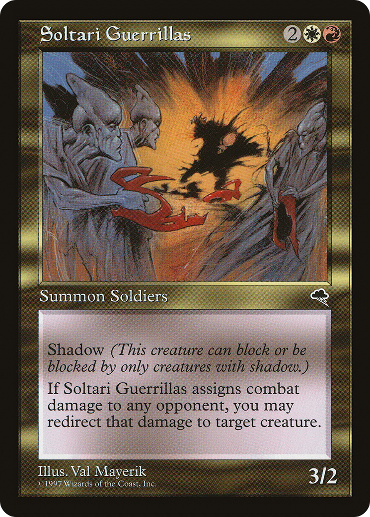Shadow (This creature can block or be blocked by only creatures with shadow.) : The next time this creature would deal combat damage to an opponent this turn, it deals that damage to target creature instead.