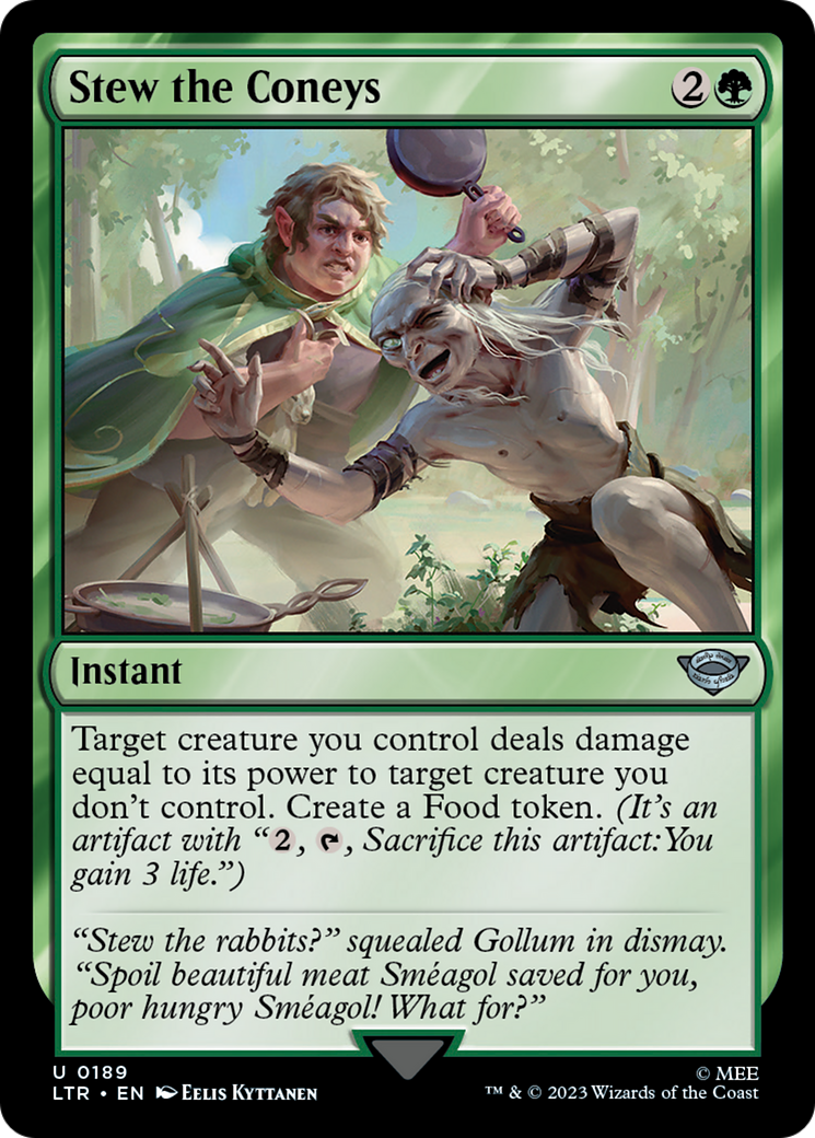 Target creature you control deals damage equal to its power to target creature you don't control. Create a Food token. (It's an artifact with ", , Sacrifice this token: You gain 3 life.")