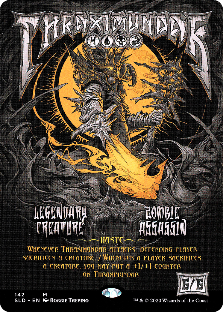 Whenever a player sacrifices a creature, you may put a +1/+1 counter on Thraximundar.