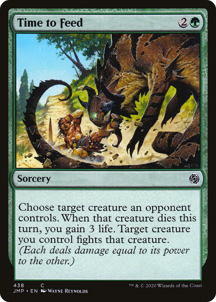Choose target creature an opponent controls. When that creature dies this turn, you gain 3 life. Target creature you control fights that creature. (Each deals damage equal to its power to the other.)