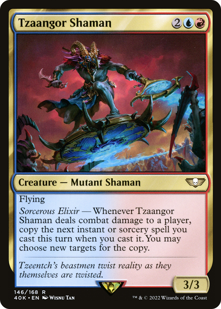 Sorcerous Elixir — Whenever this creature deals combat damage to a player, copy the next instant or sorcery spell you cast this turn when you cast it. You may choose new targets for the copy.