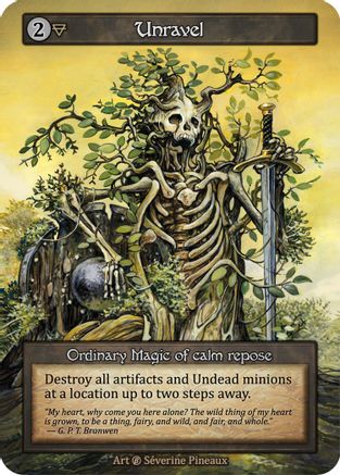Destroy all artifacts and Undead minions at a location up to two steps away.