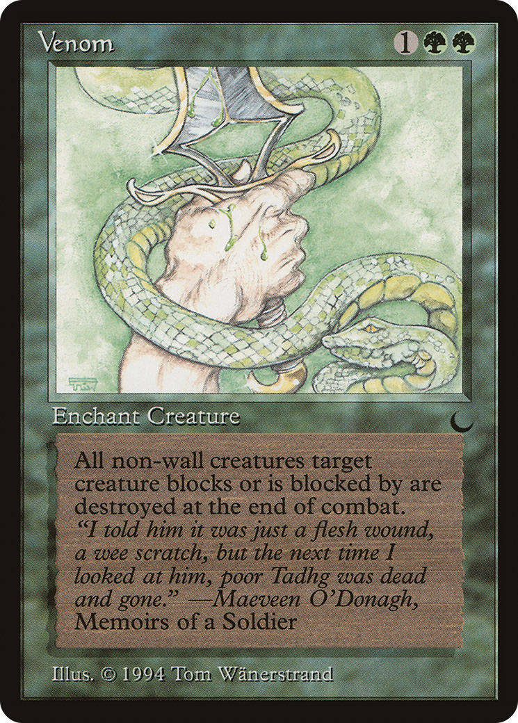 Whenever enchanted creature blocks or becomes blocked by a non-Wall creature, destroy the other creature at end of combat.