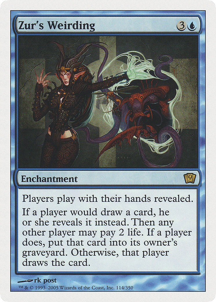 If a player would draw a card, they reveal it instead. Then any other player may pay 2 life. If a player does, put that card into its owner's graveyard. Otherwise, that player draws a card.